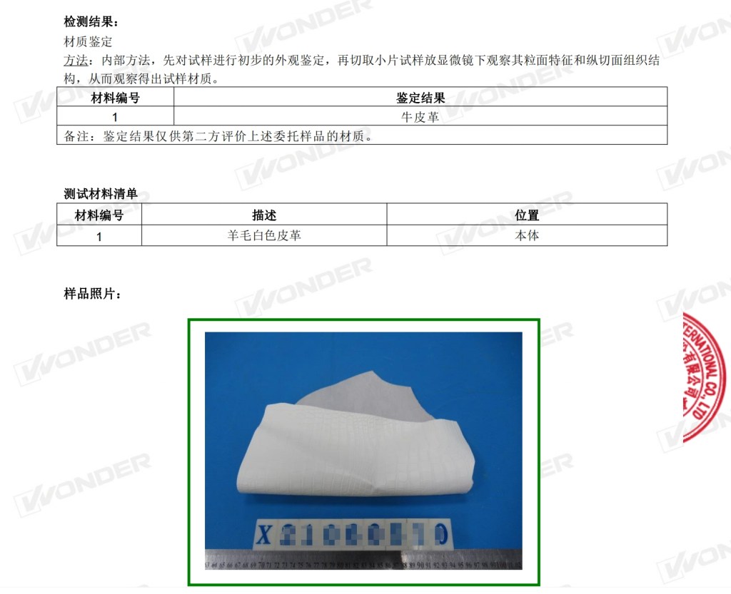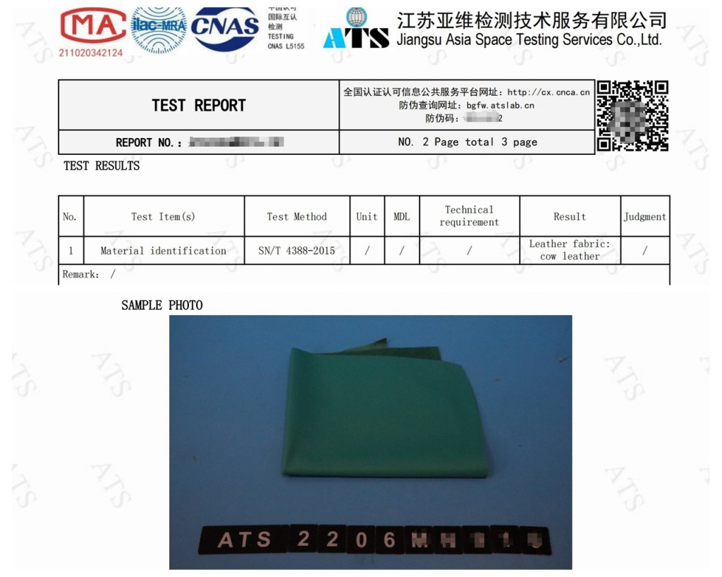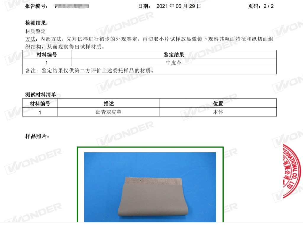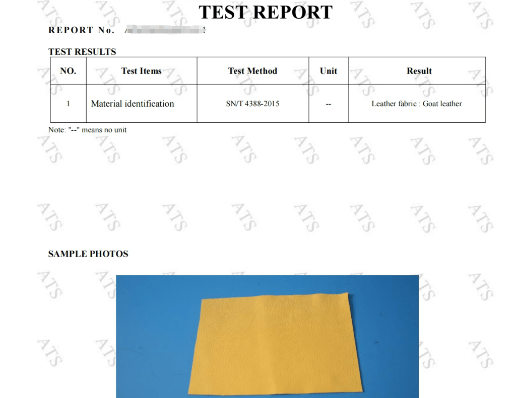 Raw Material Leather Test Report